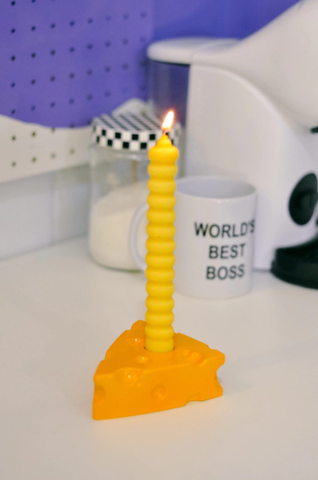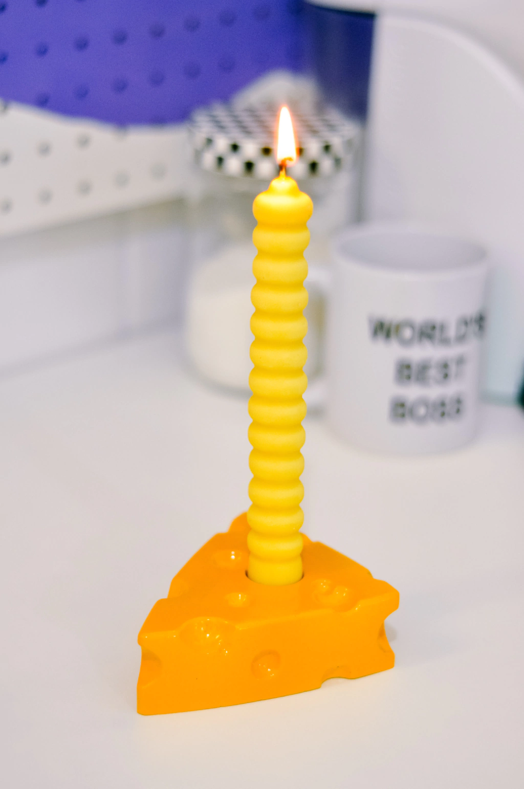 O castiçal queijo é exclusivo e limitado. Uma criação Mardon da fiel representação de uma fatia de queijo, idealizado e modelado a mão de forma artesanal. Já imaginou chegar em casa e ver um queijo na prateleira? Uma surpresa agradável e única! Vela não inclusa.