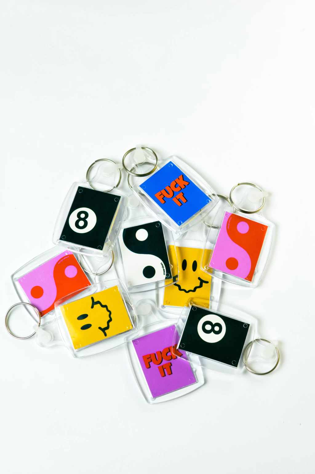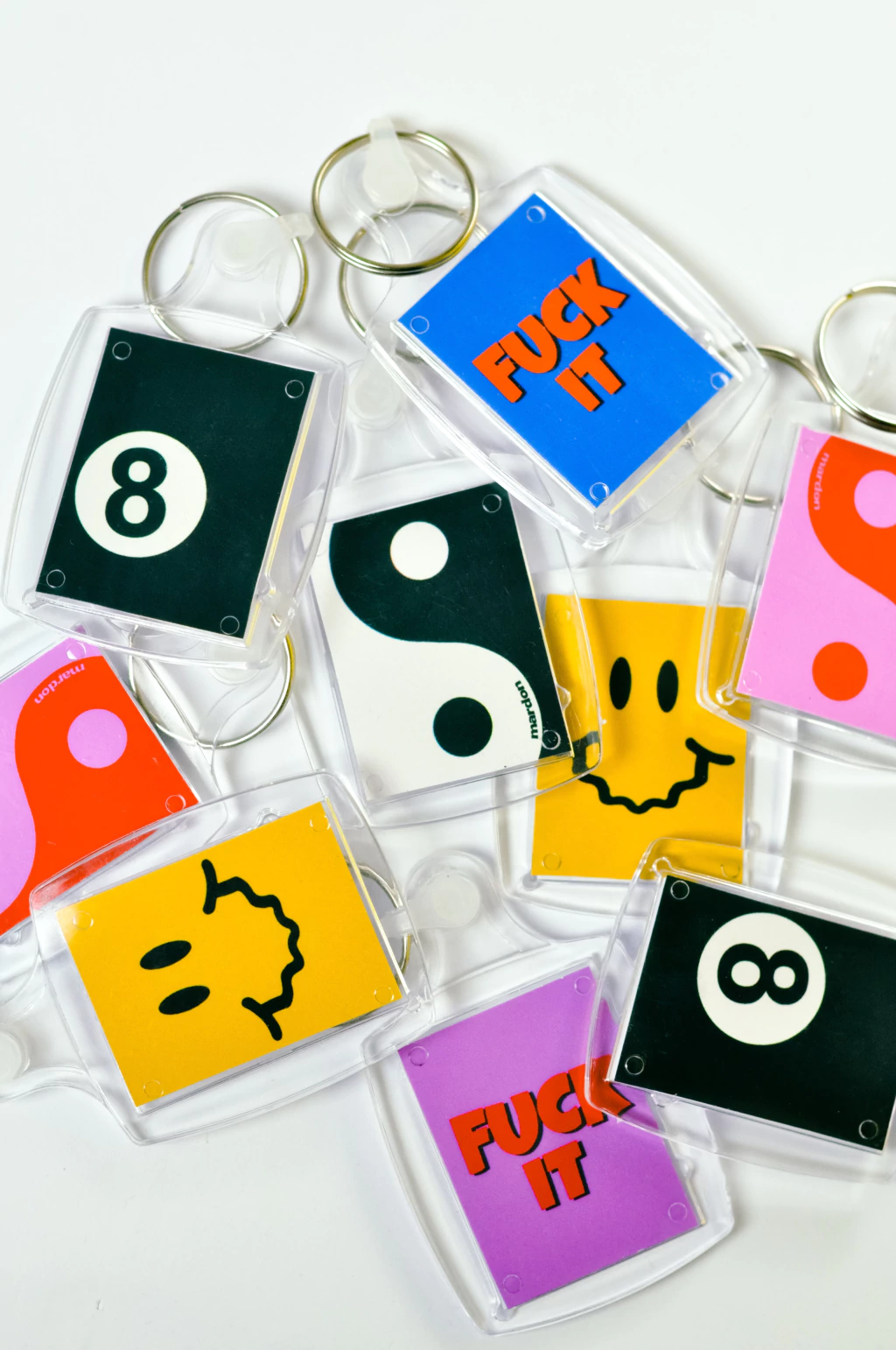 O chaveiro retrô com estampas em estéticas variadas para usar em composição com os nossos outros chaveiros, ou com os seus próprios. Combina com literalmente tudo!