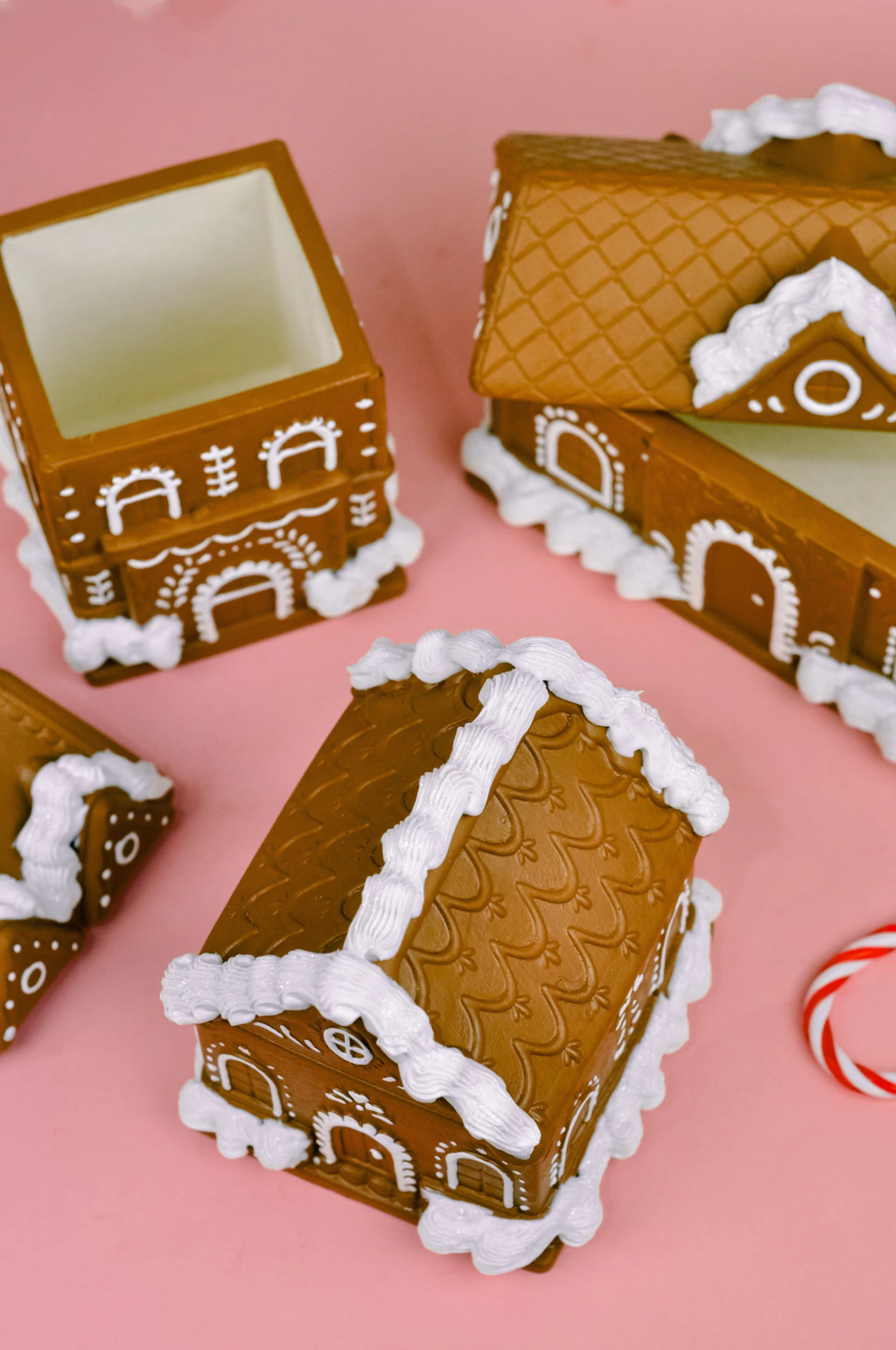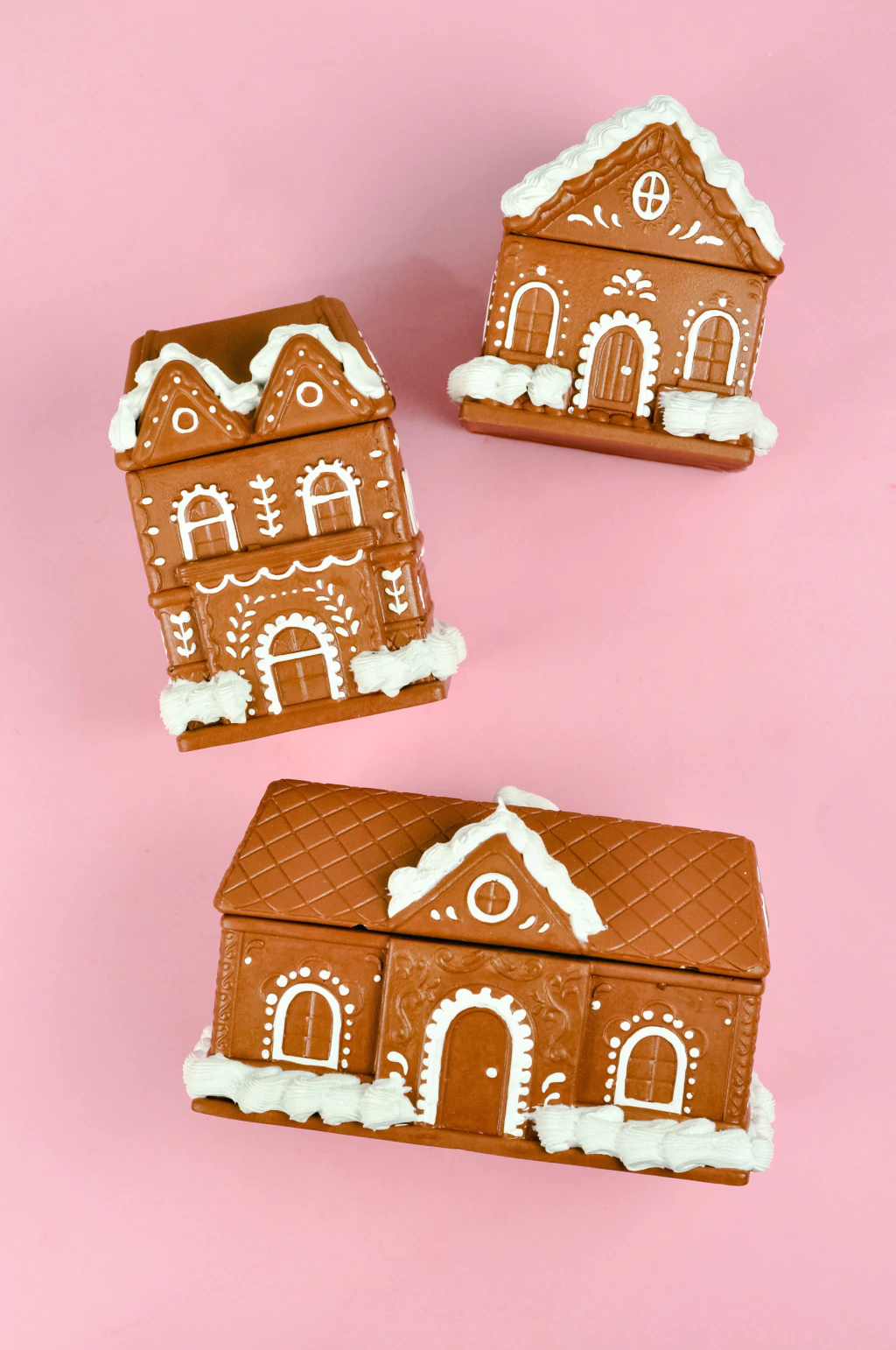THE KITSCHY XMAS — Uma casa verídica casa de gingerbread que parece ter saído de um filme natalino direto para a sua decoração. Totalmente pintada e confeitada à mão, nos mínimos detalhes e com acabamento premium. Contém 3 casas, uma de cada tamanho.