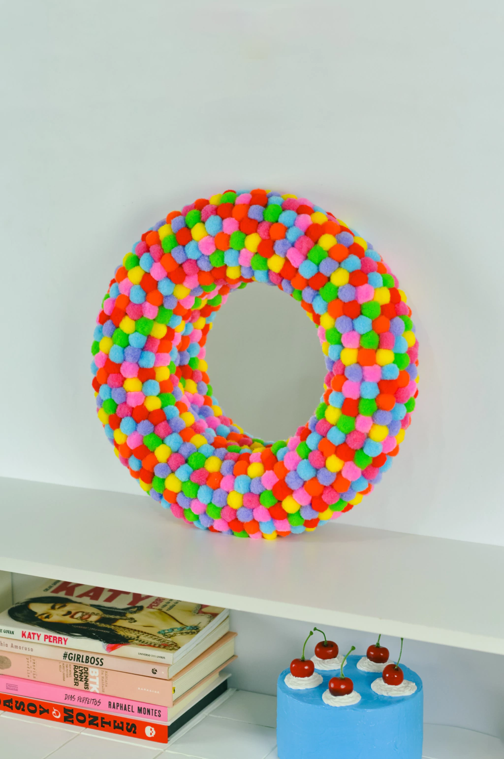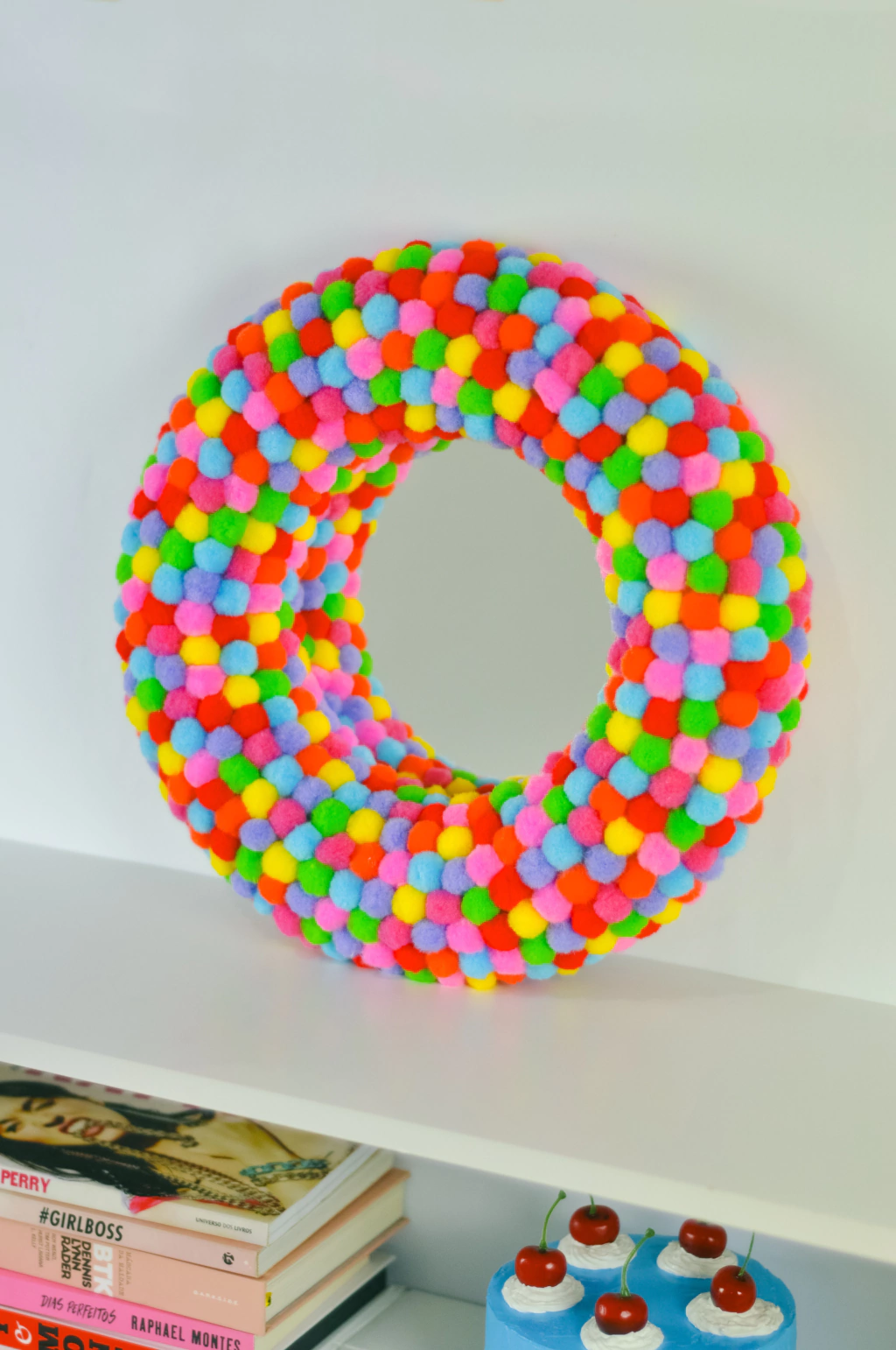 Material: Espelho, poliestireno & pompom colorido.