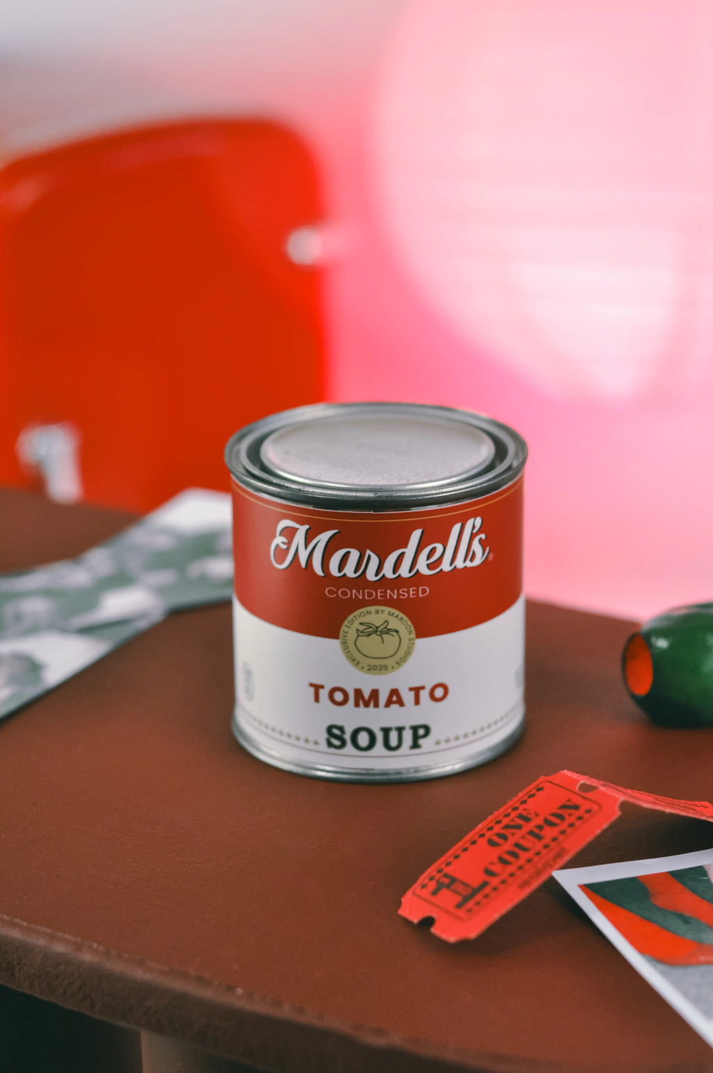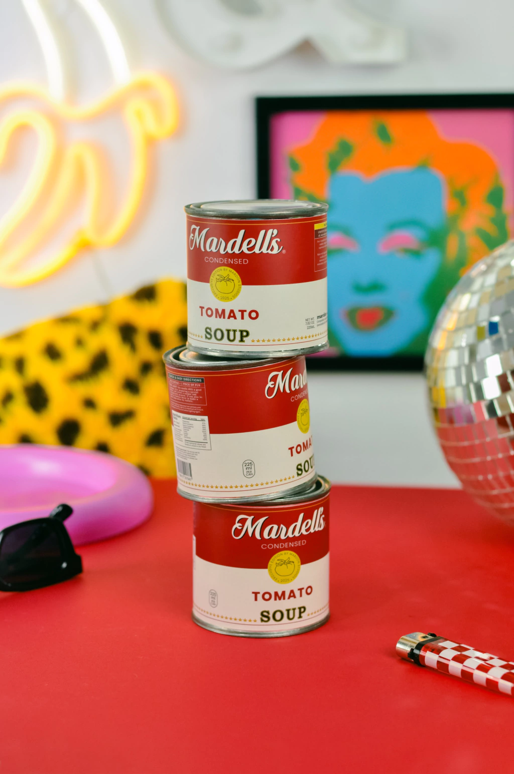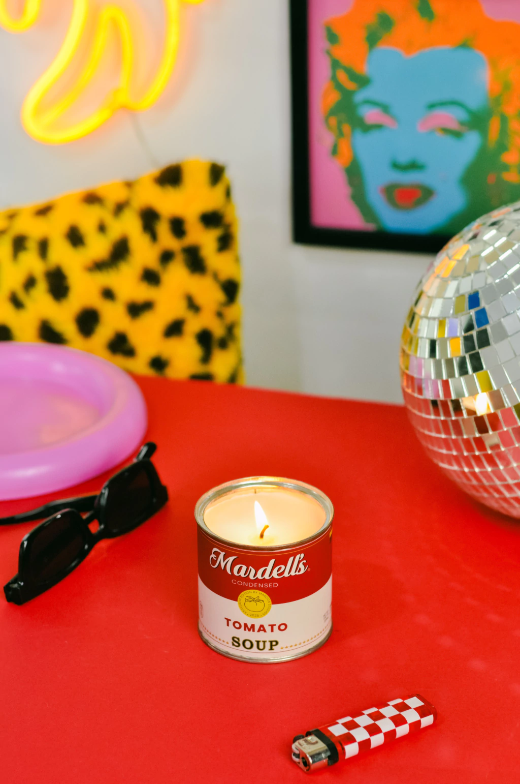O toque divertido inspirado na clássica sopa de tomate, que além disso, é uma das obras mais icônicas do movimento pop art. É como ter arte contemporânea em casa — perfeita para decorar, acender e surpreender quem passar por perto.