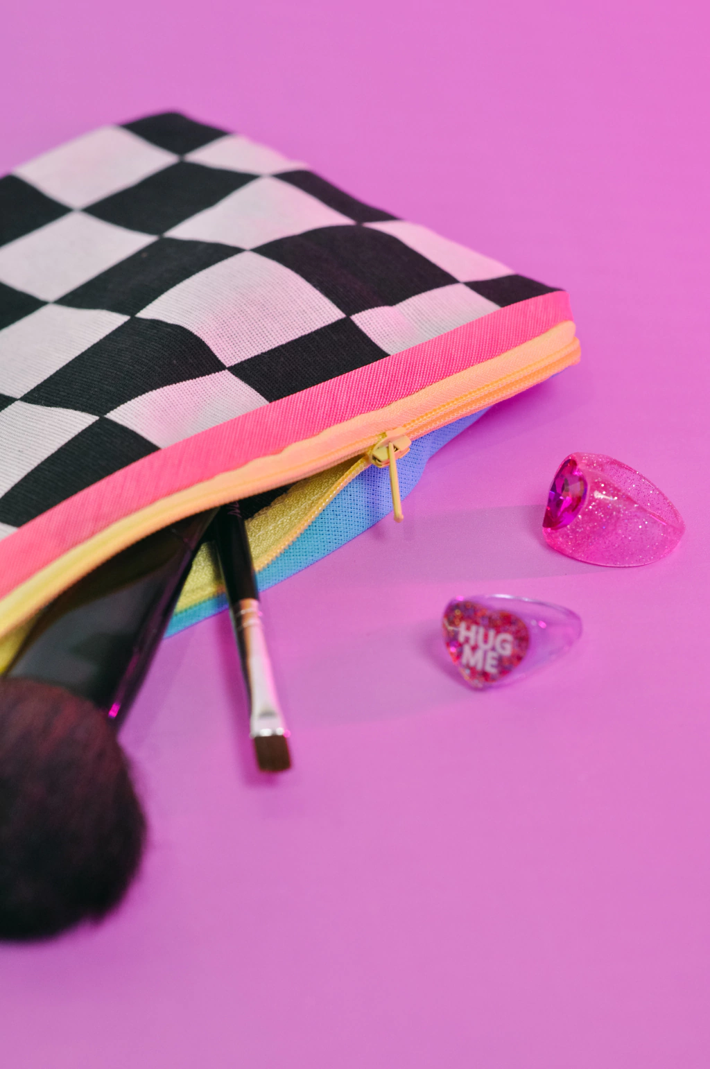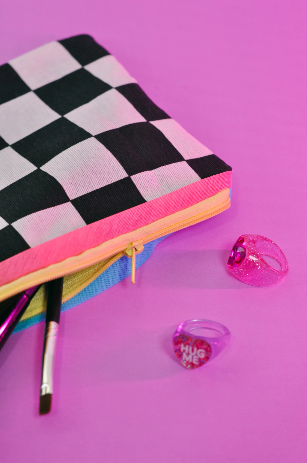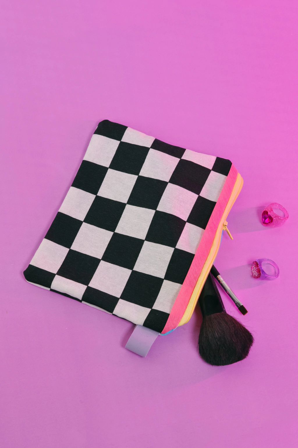 A necessaire checkerboard é uma criação mardon para amantes dessa estética tão marcante e atemporal. O tamanho perfeito para guardar pincéis de maquiagem, produtos de skin care ou o que preferir para deixar organizado sem perder a classe e o estilo.