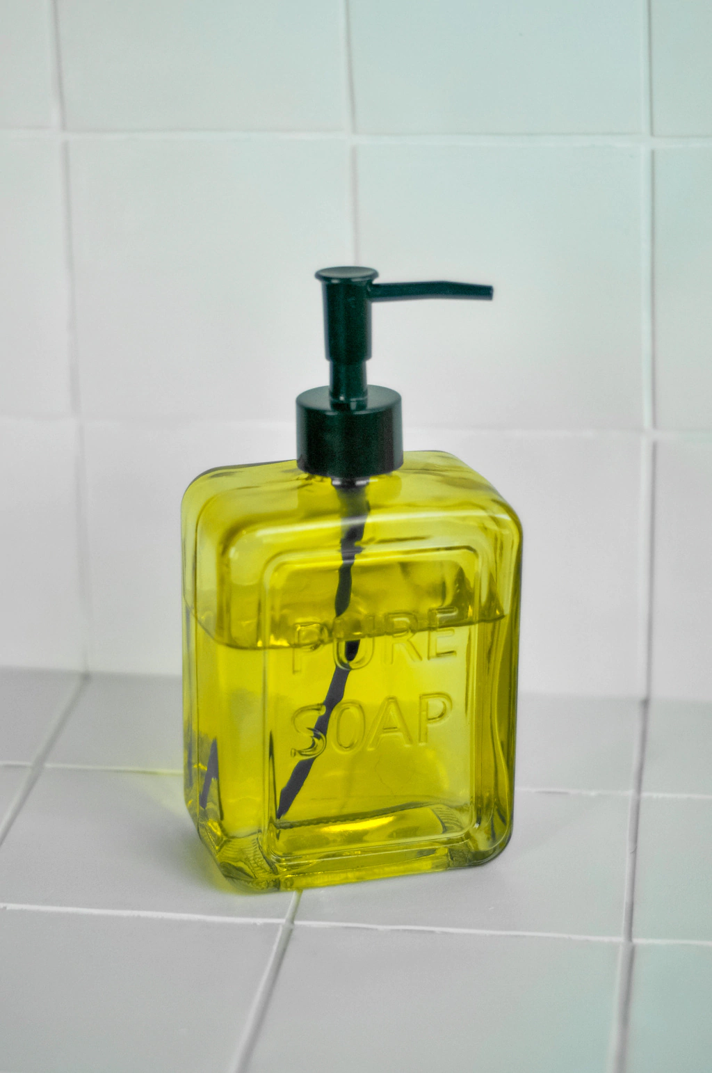 O porta sabonete líquido perfeito para decorar o seu banheiro proporcionando um ponto de cor e utilidade.