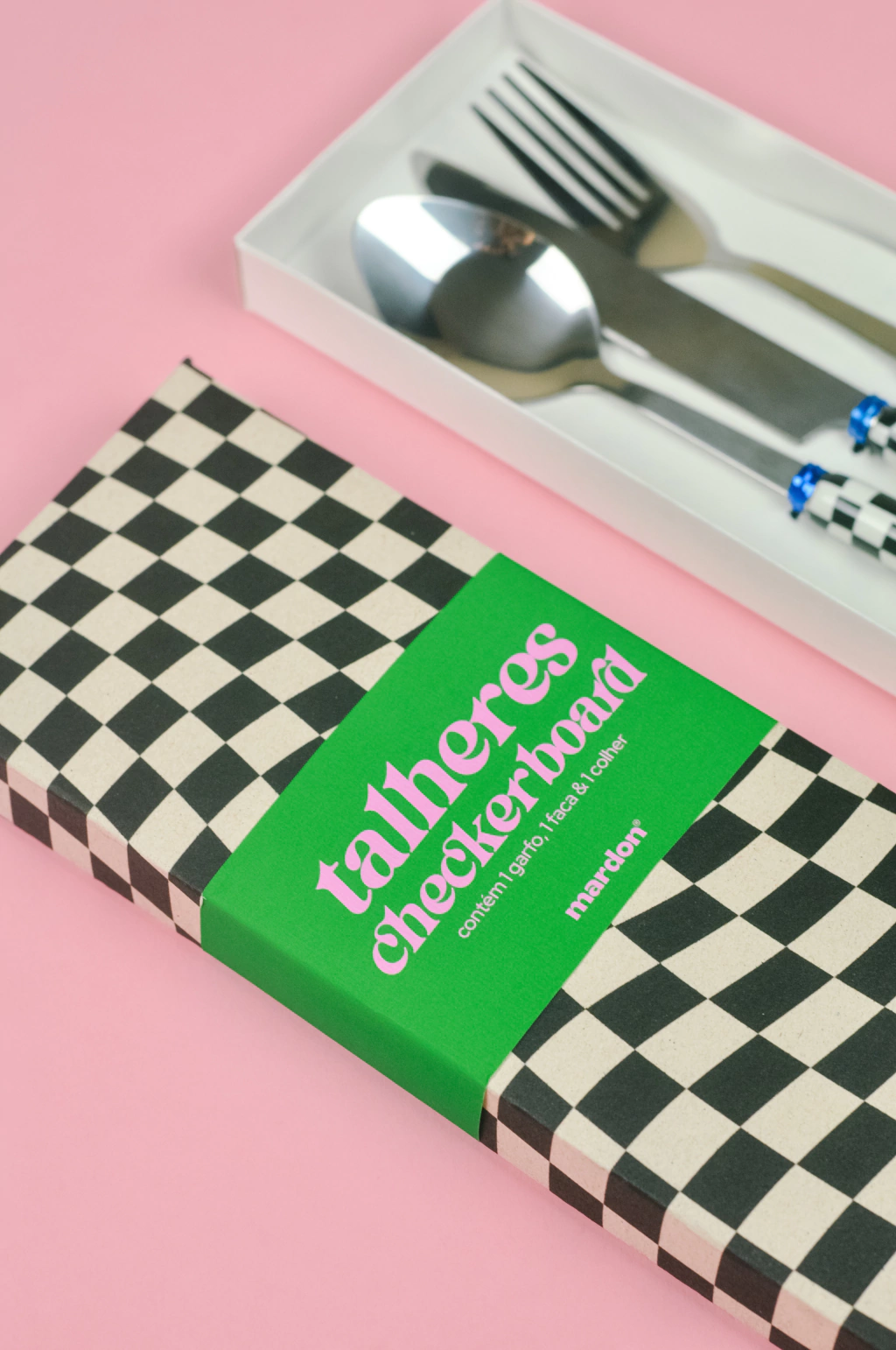 EXCLUSIVO MARDON — Os talheres checkerboard para tornar a sua mesa posta especial e autêntica. Um jantar não será simples se acompanhado deste marcante item — além de impressionar todos os seus convidados.