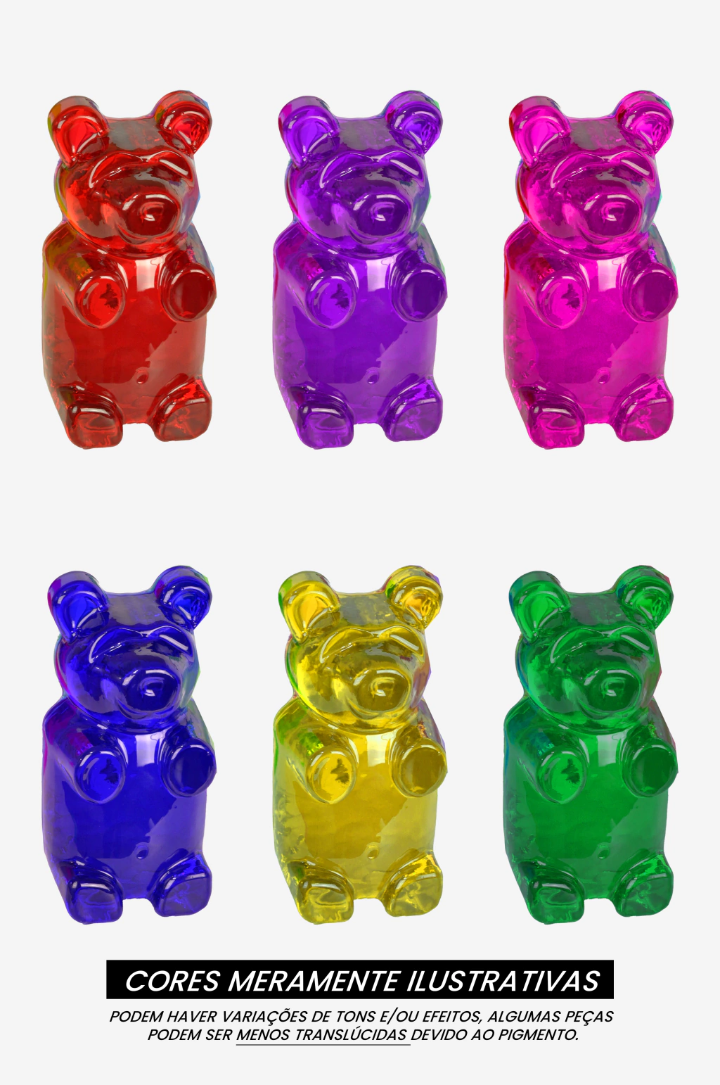Peça em resina com textura gelatinosa que vai transformar a decoração do seu espaço com muita cor e diversão. Um urso gummy perfeito para impressionar à todos, com toque de criatividade e nostalgia.