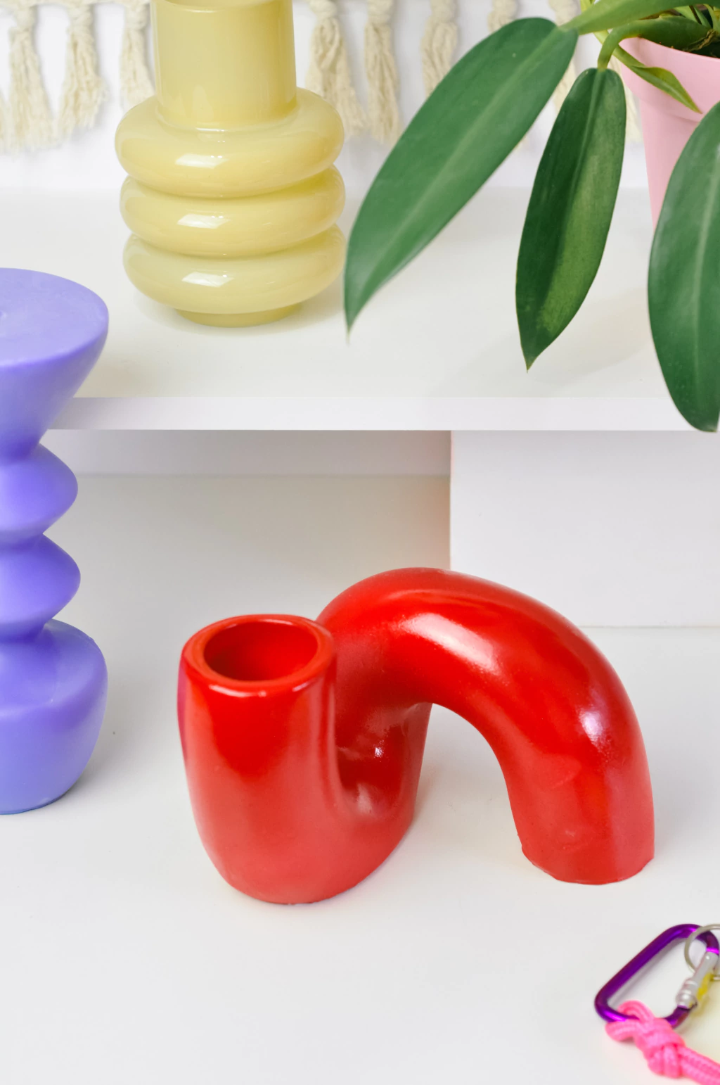 O vaso curvy é divertido e imponente. Com aspecto curvado, é perfeito para utilizar com arranjos de flores artificiais ou até mesmo vazio. Ele por si só é o evento.