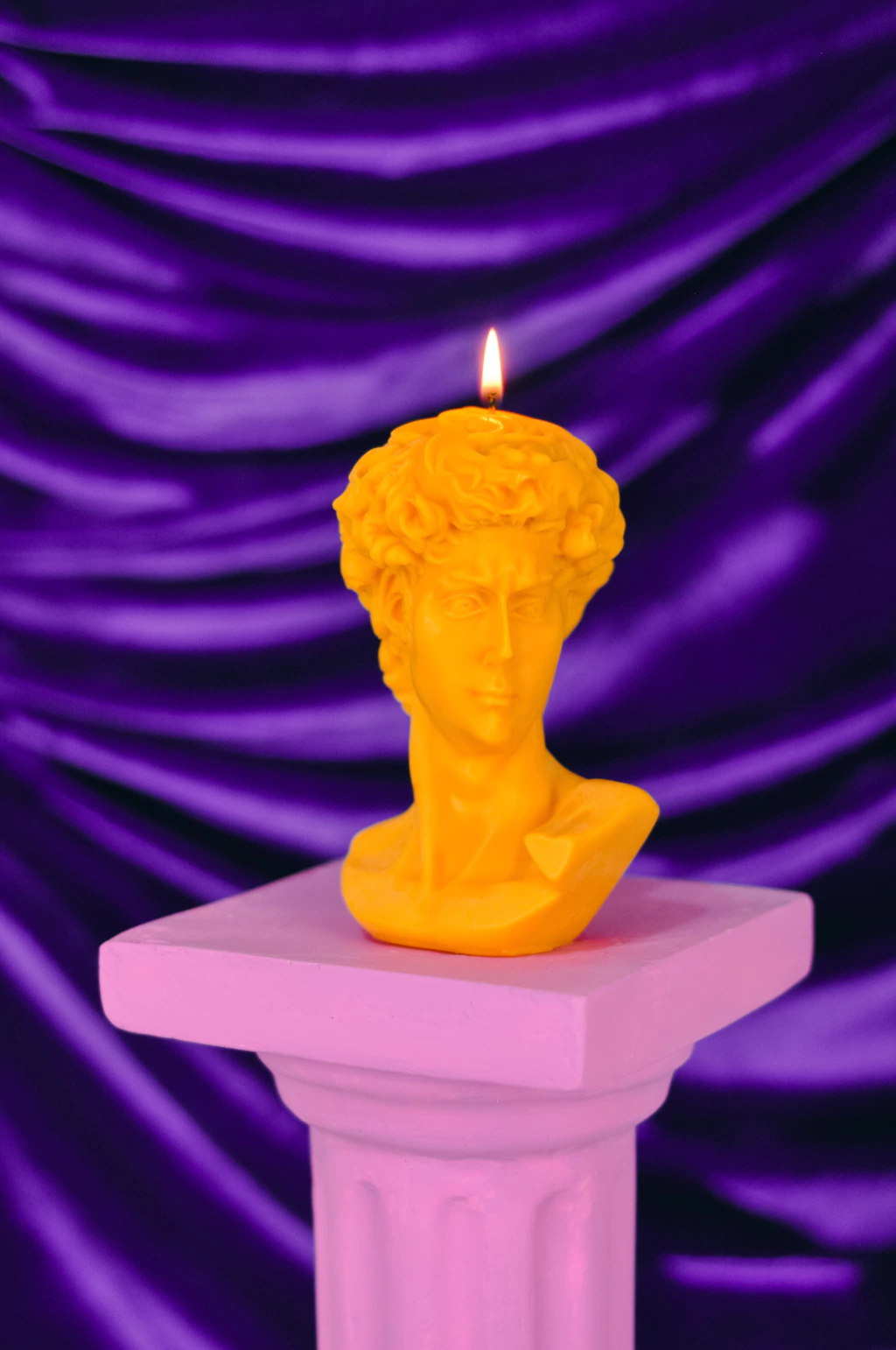 A vela Busto David é inspirada na obra de arte do artista renascentista Michelangelo. Com ela, você pode ter a sua própria galeria de arte em qualquer ambiente. Com cores vibrantes e intensas, é perfeita para dar vida a qualquer ambiente.