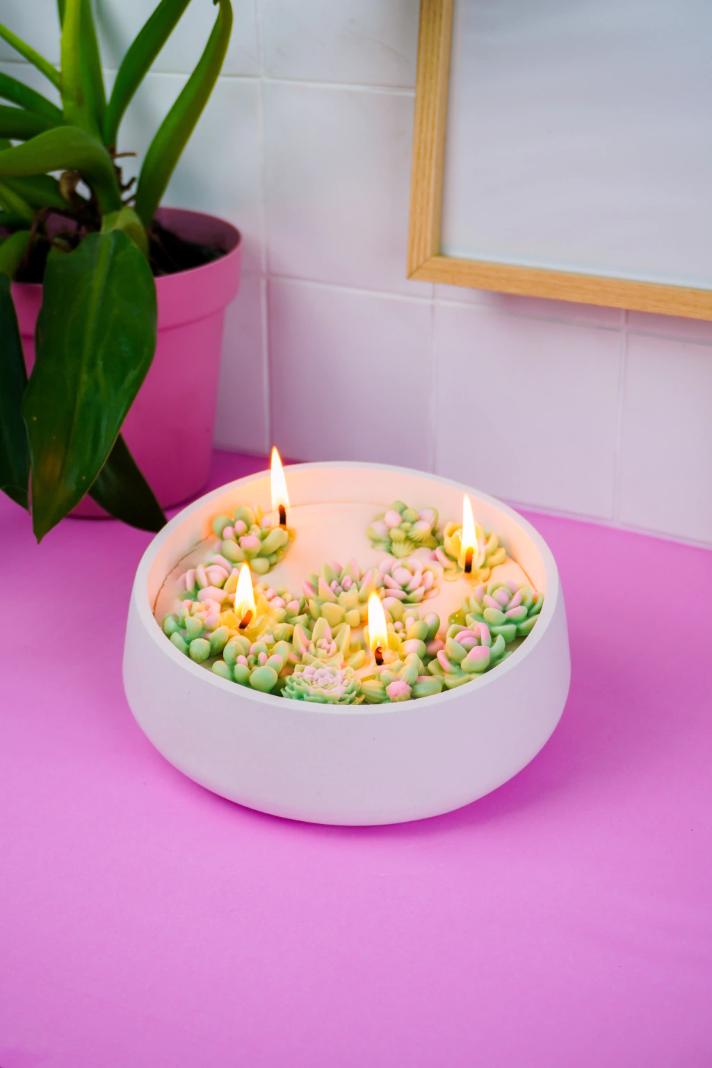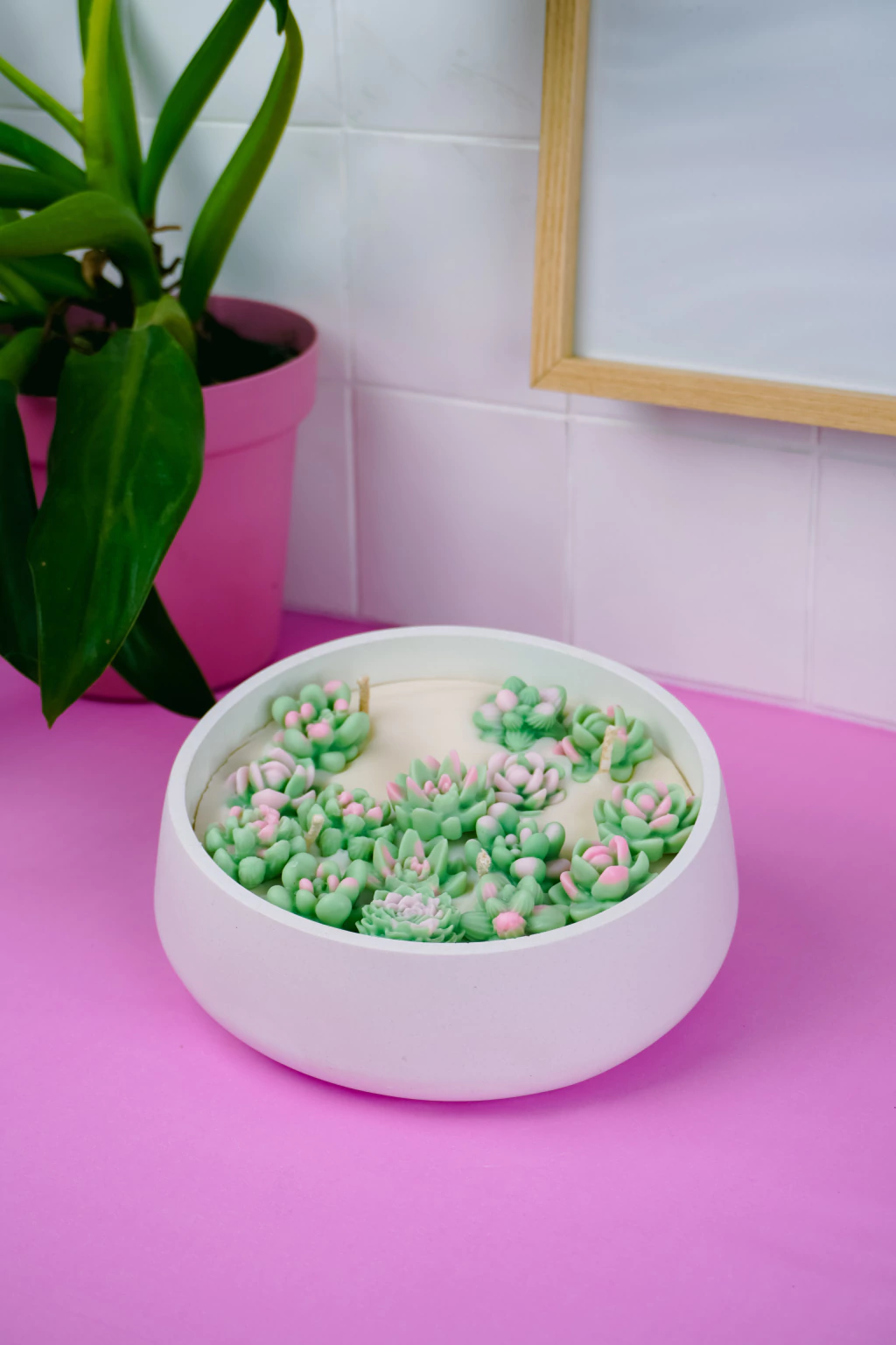 Uma vela inspirada na serenidade das suculentas — equilíbrio entre o verde da natureza e a pureza do branco. Feita com cera de coco, traz frescor e calma para o seu espaço.