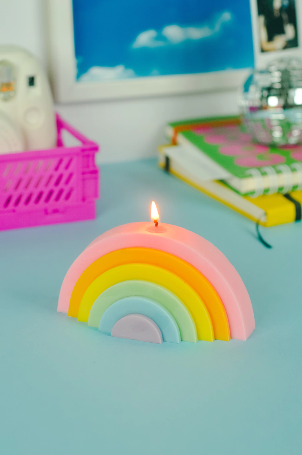 A vela rainbow tem formato de arco íris. Descontraída, trendy e cool, dará um up na decoração do seu ambiente. Por ter um design mais básico e jovial, combina com quartos, escritórios, sala, banheiro e qualquer lugar que desejar.