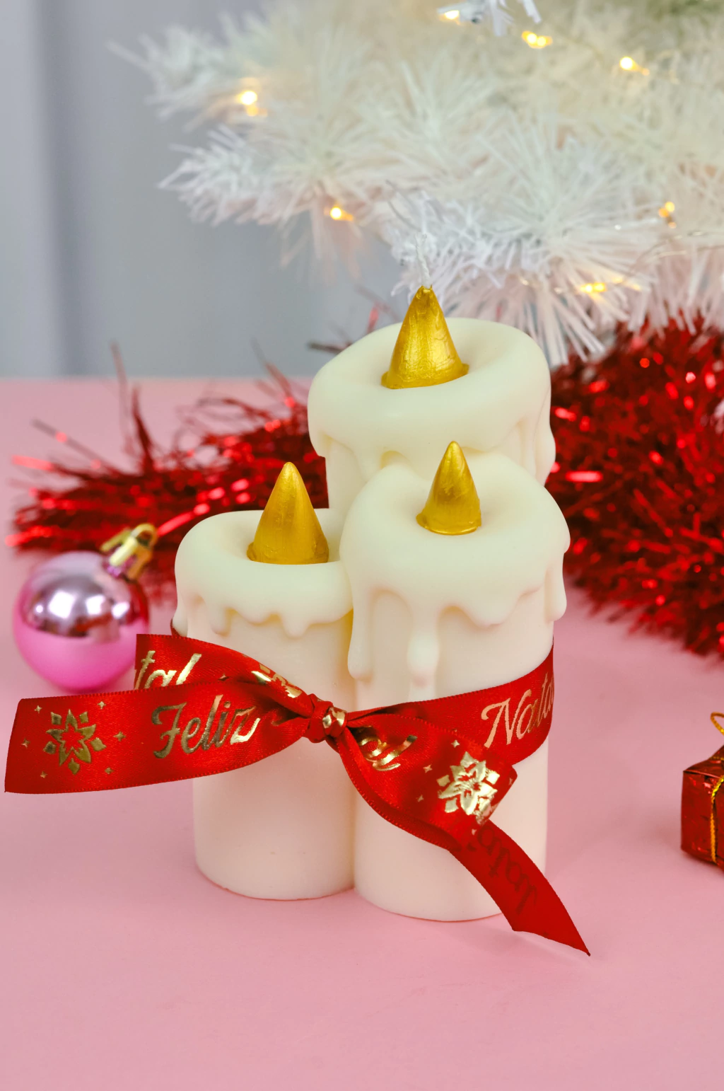 THE KITSCHY XMAS — Um clássico do Natal em forma de vela.O trio natalino une tradição e charme em um design imponente e festivo, perfeito para decorar e espalhar o espírito natalino por todo o ambiente.